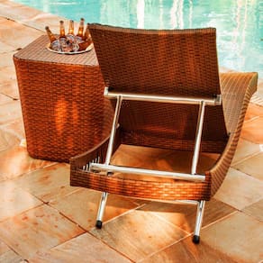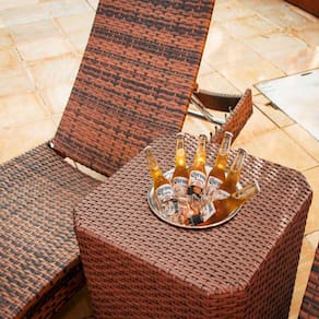 3 Espreguiçadeiras e Mesa Grécia com Balde em Alumínio para Piscina, Jardim, Área - Trama - Marrom Escuro