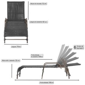 3 Espreguiçadeiras Reclinavel Catar Marrom Corda Nautica Preto