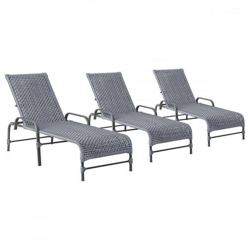 3 Espreguiçadeiras Reclinavel Catar Preto Corda Nautica Prata
