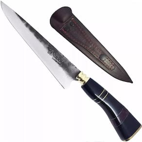 - Aço Carbono 1070: A lâmina é temperada a óleo em um processo bem artesanal. Possui grande resistência e mantém o fio por muito tempo. Por ser aço carbono, é um material que enferruja com facilidade, porém, a oxidação não interfere no fio. Para melhor conservação visual é necessário seguir os cuidados indicados a cima.