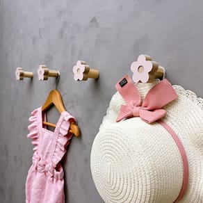 A face vai colada com super cola e acaba sendo apenas decorativa, pois é o suporte quem recebe o esforço, suportando até 5 Kg. Anúncio referênte à 3 unidades. Modelo: Flor Tamanho da face: 5,0cm X 5,0cm; Material: MDF laminado 15mm melamínico | borda cru Cor: Rosa, Azul, Branco e Cinza