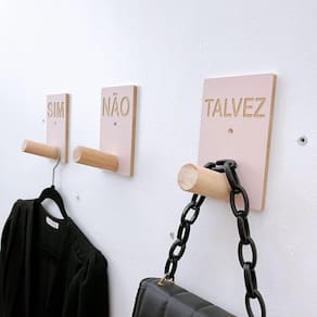 Trio de penduradores | Sim Não Talvez | com pino inclinado Ideais para uso comercial em provadores de loja, facilitando a escolha das peças e mostrando todo o cuidado que o lojista moderno tem com seus clientes!