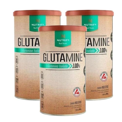 Glutamine 500g L-glutamina Pura Isoada Vegana Nutrify - Kit 3 UnidadesGLUTAMINE NUTRIFY contém 5 g de L-glutamina por porção. Produzido com matéria-prima Ajinomoto de extrema pureza e alta absorção, é isento de glúten, lactose, corantes ou aromatizantes artificiais.A GLUTAMINE NUTRIFY é um aminoácido, um tipo de molécula que desempenha muitas funções no corpo. Seu principal objetivo é servir como blocos de construção de proteínas, substâncias cruciais para nossos órgãos. Mas os aminoácidos também cumprem outras tarefas, como transportar substâncias no sangue e combater vírus e bactérias prejudiciais à nossa saúde.BENEFICIOS: Recuperação muscular Ganho de massa muscular Evita o catabolismo Aumento da imunidade Matéria-prima Ajinomoto Produto vegano 5 g de L - glutamina por porção Isento de glúten, lactose, corantes e aromatizantes artificiais Controla o processo de anabolismo e catabolismo Remove os excessos de amônia e nitrogênio do corpo Regula a síntese e degradação de proteínas Regulação do sistema imune