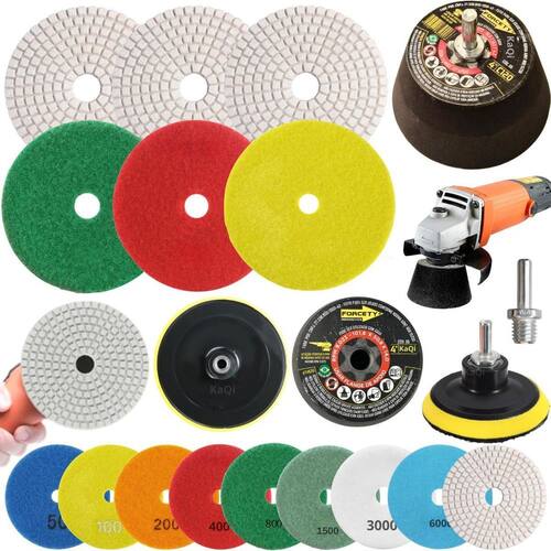 3 Lixas Grão 4 Pol. 100mm Diamantada + 1 Rebolo Cônico 45 Graus + 1 Disco Prato + 1 Pino M14 KaQi GRÃO: g400 g800 g6000 Kit 3 Lixas Diamantadas Disco 4 Polegadas 100mm KaQi + 1 Rebolo Grão 120 Copo Cônico 45 Graus 4 Polegadas M14 Forcety. + 1 Suporte Prato Disco 100mm M14 KaQi + 1 Pino Adaptador Multiuso Rosca Universal M14 KaQi. Para Desbastes, Polimentos, Acabamentos, Boleamentos, Lixamentos a Seco e Úmido. Ideal para profissionais e entusiastas de reformas e construção. Transforme o acabamento das suas superfícies com o Kit 3 Lixas Grão 4 Pol. 100mm Diamantada + 1 Rebolo Cônico 45 Graus + 1 Disco Prato + 1 Pino M14 Desenvolvido para oferecer o melhor polimento e acabamento, é perfeito para quem busca resultados profissionais, tanto em pedras como granitos, mármores, cerâmicas, quanto ardósia, calcário, dekton, quartzo, porcelanato, pedra projetada, concreto, nanoglass, super nano, vidro e muito mais. Seu lixamento pode ser a seco e a úmido, o que proporciona um processo mais rápido, sem gerar calor excessivo. Assim, é possível garantir um resultado sem manchas ou falhas, e ainda favorece um efeito brilho d'água incrível O Rebolo Copo Cônico 10x5cm Grão 120 Forcety é ideal para desbastes, retificações, boleamentos e acabamentos. Projetado para oferecer eficiência, durabilidade, confiabilidade e resultados excepcionais, é perfeito para profissionais e entusiastas de reformas e construções. Não à toa, é o rebolo número 1 das marmorarias, azulejistas e oficinas de todo Brasil O Disco 100mm e o pino adaptador M14 podem ser utilizados em conjunto com as lixas e com o rebolo. Com sistema de gruda e desgruda fácil, podem utilizadas em lixadeiras, esmerilhadeiras, politrizes, furadeiras, parafusadeiras. Permite, assim, ampliar a gama de usos do kit. Principais características: 1. Durabilidade extra, alta resistência ao desgaste, longa vida útil e desempenho, além de excelente performance em diversos tipos de materiais. 2. Acabamento impecável no desbaste e polimento de superfícies de pedra, mármore, calcário, ardósia, porcelanato e outros, sem deixar manchas ou marcas indesejadas. Pode ser trabalhada em superfícies claras ou escuras. Oferece uma remoção eficiente de material e um acabamento uniforme. 3. Versatilidade no uso com diversas ferramentas, já que pode ser Utilizado em esmerilhadeiras, lixadeiras, politrizes e furadeiras elétricas. 4. Eficiência de montagem, uma vez que possui sistema de fixação rápido. Basta encostar a lixa no suporte do disco para grudar, e, para remover, é só puxar na direção contrária. Conteúdo da embalagem: 3 Lixas DÁgua 4 Pol. 100mm Disco Diamantado KaQi GRÃO. + 1 Rebolo Grão 120 Copo Cônico 45 Graus 4 Polegadas M14 Forcety. + 1 Suporte Prato Disco 100mm M14 KaQi + 1 Pino Adaptador Multiuso Rosca Universal M14 KaQi. Especificações Lixas: Diâmetro: 100mm 4 Polegadas . Furo central: 1,3cm diâmetro. Espessura 1 unidade: 0,4cm. Maleabilidade: flexível. Lixamentos: seco e úmido. RPM: ideal entre 3000 a 5000 rotações por minuto. Material da lixa: diamante sintético industrial e resina premium. Costado: tipo vellcro. Fácil de fixar e remover. Especificações Rebolo: Trabalho: a seco ou refrigerado com água. Diâmetro: 4 Polegadas 100mm 10,16cm x altura 5,08cm. Velocidade: 9023RPM. Rosca: M14. Material: Carbeto de Silício SiC com diamantes. Norma ABNT NBR 15230. Especificações Prato Suporte: Diâmetro do disco: 100mm 4 Polegadas . Modelo do disco: M14 com superfície tipo vellcro. RPM: até 12000. Rosca: padrão M14 14mm . Especificações Pino Adaptador M14: Para Furadeira Parafusadeiras, Politrizes, Lixadeiras e Esmerilhadeiras. Fixa em discos pratos M14 para uso com lixas, boinas, espumas de polir, entre outros acessórios. Rosca: M14 14mm . Pino largura: 8mm. Altura total: 4,4cm.