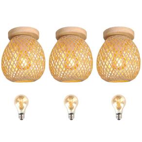 3 Luminaria Bambu Plafon Artesanal Fibra Natural Nat93 + Led
