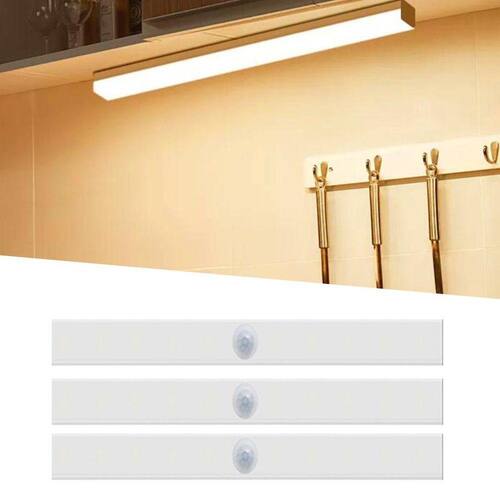 3 Luminárias Lâmpada Led 5W Barra 50Cm USB Sensor De Presença Movimento Luz Branco Quente Para Closets Armários Nichos