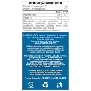 - 180mg do mix bisglicinato e óxido de magnésio por porção - 2 cápsulas;