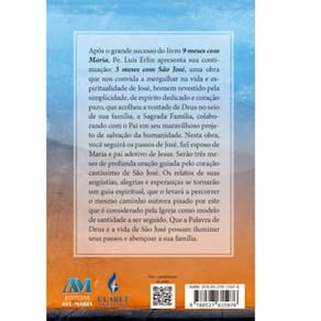 Após o grande sucesso do livro9 meses com Maria, Pe. Luís Erlin apresenta sua continuação: 3 meses com São José - Em oração pela minha família, uma obra que nos convida a mergulhar na vida e espiritualidade de José, homem revestido pela simplicidade, de espírito dedicado e coração puro, que acolheu a vontade de Deus no seio de sua família, a Sagrada Família, colaborando com o Pai em seu maravilhoso projeto de salvação da humanidade. Nesta obra, você seguirá os passos de José, fiel esposo de Maria e pai adotivo de Jesus. Serão três meses de profunda oração guiada pelo coração castíssimo de São José. Os relatos de suas angústias, alegrias e esperanças se tornarão um guia espiritual, que o levará a percorrer o mesmo caminho outrora pisado por este que é considerado pela Igreja como modelo de santidade a ser seguido. Que a Palavra de Deus e a vida de São José possam iluminar seus passos e abençoar a sua família.