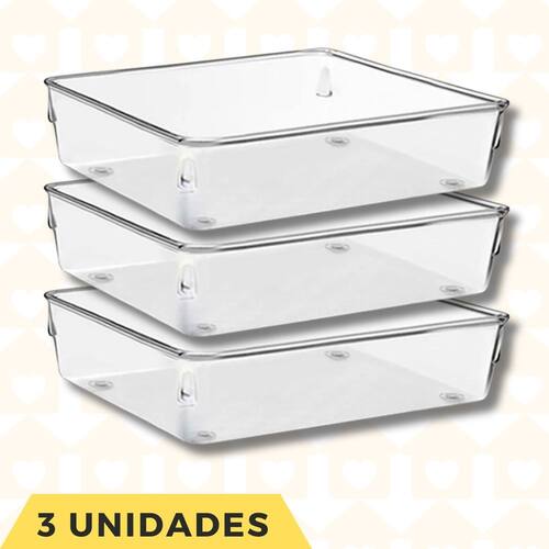 Esses organizadores são perfeitos para setorizar suas gavetas. Você compõe conforme os itens que serão organizados, além de serem empilháveis para otimizar o espaço utilizado e modulares para que você defina o tamanho e a quantidade que necessita para organizar melhor o seu ambiente. São ideais para temperos, materiais de escritório, gavetas e outros objetos pequenos. Em plástico de alta qualidade, transparente para facilitar a visualização dos objetos.