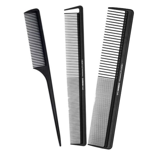 CONTÉM: 01UN PENTE PROFISSIONAL DE CARBONO PRO CABO FINO VERTIX 01UN PENTE PROFISSIONAL DE CARBONO PRO CONTROL VERTIX 01UN PENTE PROFISSIONAL DE CARBONO PRO MÉDIO VERTIX