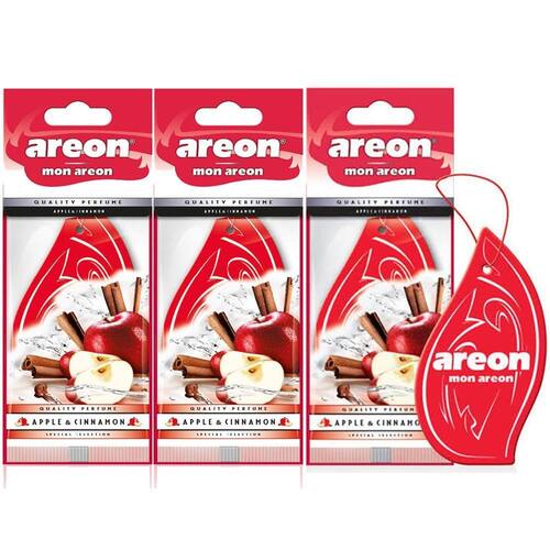 O Kit é composto por 3 unidades do Aromatizante Areon Maça e Canela.