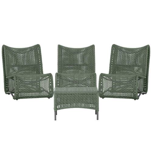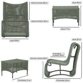 3 Poltronas E Mesa Texas Alumínio Preto Corda Náutica Trama Verde
