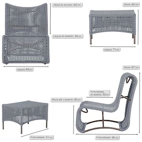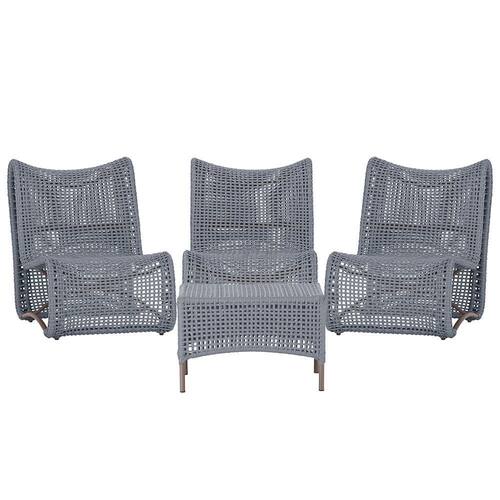 3 Poltronas e Mesa Texas em AlumínioTrama - Prata