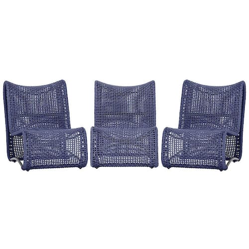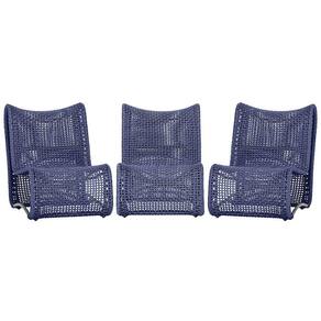 3 Poltronas Texas Em Alumínio Preto Corda Náutica Trama Azul