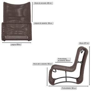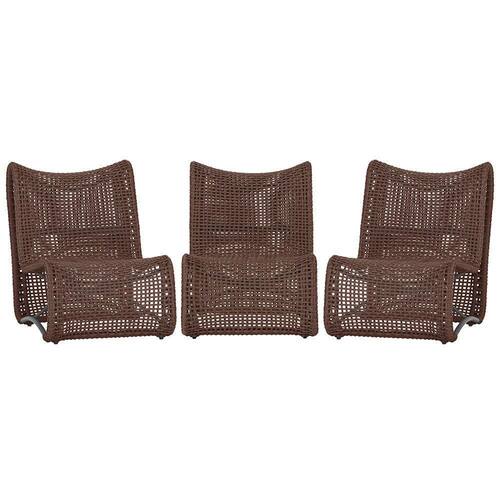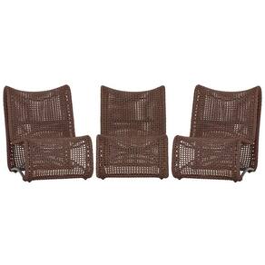 3 Poltronas Texas Em Alumínio Preto Corda Náutica Trama Marrom