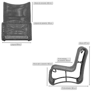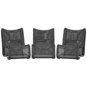 3 Poltronas Texas Em Alumínio Preto Corda Náutica Trama Preto