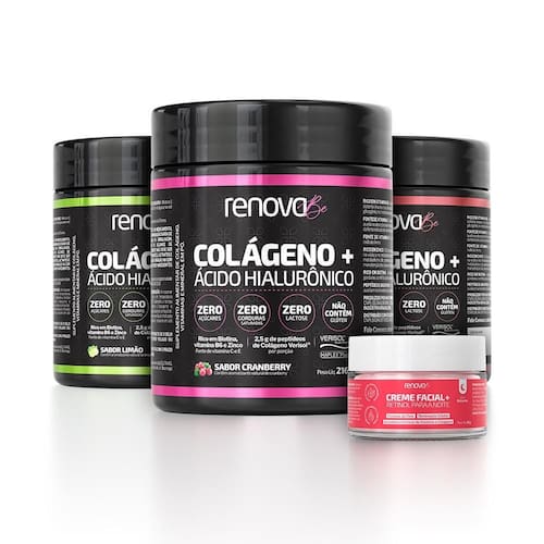 3 potes colágeno verisol renova be + 1 creme facial retinol Sabor: 1 cranberry + 1 limão + 1 pink lemonade Composto por 3 colágenos + creme retinol - colágeno 216g cada pote - creme 30g O colágeno renova be verisol com ácido hialurônico é um suplemento alimentar de alta qualidade, ideal para pessoas com mais de 19 anos. Com ingredientes como peptídeos bioativos do colágeno e ácido hialurônico, este produto é uma excelente opção para quem busca cuidar da saúde da pele, cabelos e unhas. Além disso, é livre de glúten e não contém lactose, sendo uma escolha segura para quem tem restrições alimentares. A embalagem contém 216g de pó, com uma porção de 12g que fornece nutrientes essenciais como fibras, proteínas, carboidratos e 50mg de ácido hialurônico. Recomendado para fins nutricionais, o colágeno renova be é uma opção prática e eficaz para incluir na rotina diária. Se você busca um suplemento de qualidade para cuidar da sua beleza de dentro para fora, experimente o colágeno renova be verisol com ácido hialurônico. Recomendação de uso - em um copo ou coqueteleira misture 1 colher de sopa aprox.12g em 150ml de água ou leite, consumir uma vez ao dia. Nossa recomendação é sempre usar água gelada. Somente o sabor chocolate contém lactose. Não contém glutén. Advertências: Este produto não é um . Não exceder a recomendação diária de consumo indicada na embalagem. Marca: Não Informado Ean: 7890570281274