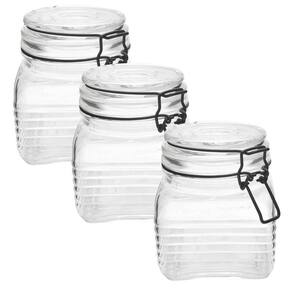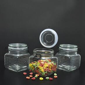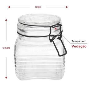 3 Potes de Vidro Hermético Quadrado com Trava Preto 800ml 3 Potes de vidro com estilo retrô, perfeito para armazenar grãos, biscoitos e etc.. Possui vedação hermética de silicone que isola o fechamento preservando o sabor e aroma do condimento armazenado. PRINCIPAIS CARACTERISTICAS: - Kit com 3 Potes- Capacidade: 800ml- Tampa com vedação em silicone- Aramado preto fosco- Dimensões: 10x12,5cm largura x altura - Composição: vidro borossilicato maior resistência a variações de temperaturas e impactos comuns.