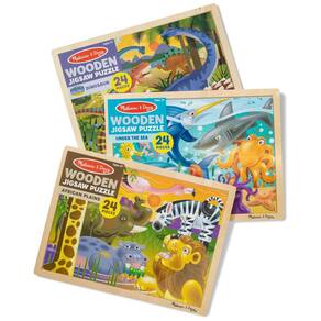 Os quebra cabeças clássicos de madeira da Melissa Doug são ideais para crianças pequenas, com peças resistentes e fáceis de agarrar, levantar e conectar para criar cenas impressionantes. Este pacote inclui três quebra cabeças de 24 peças cada, com cenas de dinossauros, safáris e oceanos. Cada quebra cabeça vem embalado em sua própria bandeja de madeira resistente de 38 x 27 cm, o que facilita a construção e o armazenamento. Este conjunto é recomendado para crianças de três anos ou mais.