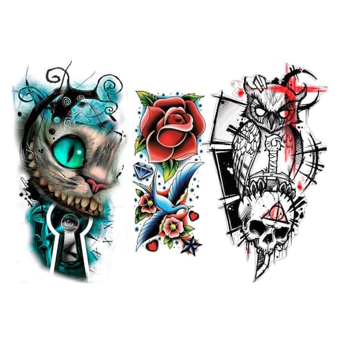 Tamanho médio das imagens 8 x 19 cmProduto anti-alérgico, atóxico e removível.- Envios de forma ágil e segura.- Atendimento pelo campo de mensagens ao vendedor- Produtos de qualidade, testados, bem embalados e cuidados para você.Duração aproximada de 05 dias (Não esfregue nada sobre a tatuagem).Para aplicar: retire a proteção plástica, aplique sobre a pele limpa e seca (sem loções ou cremes), jogue água pelo verso e retire a proteção após 2 a 4 minutos, deixar secar e não esfregar.
