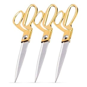 KIT COM 3 TESOURAS Tesoura para Alfaiate de Polegadas Costura Tecido Dourada MEDIDA 24 cm 9.5 POLEGADAS Fabricada em Aço Inox Reforçada para Costura com Cabo Metálico Dourado. Essa linha é de qualidade, esse modelo de tesoura é para , doméstico e/ou empresarial. Com fácil manuseio e muito confortável, possuem excepcional resistência e durabilidade. Item ideal para alfaiataria, artesanato, costura, papel, plástico e borracha. Cabo: Dourado e em metal resistente. Restrições e Riscos: Tenha cuidado ao manusear produtos cortantes e perfurantes e mantenha-os fora do alcance de crianças. Durabilidade: Indeterminada. Para melhor conservação da sua tesoura evite quedas, mantenha-a sempre seca, lubrificada e em local seguro, longe do alcance das crianças. Embalagem: Em Blister de Caixa de Papelão e Plástico Transparente. Marca: Não Informado