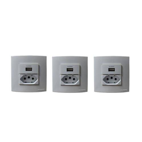 Tomada para embutir em madeira, MDF, MDP, Pedra, Marmore, Granito, Drywal ou derivados. Utilizada principalmente na marcenaria, ideais para peças planejadas como armários, cabeceiras, painéis, bancadas, balcões de cozinha, mesas para escritório, entre outras1 Saidas USB, Bivolt Automático, 5Vcc/Max. 1A1 Tomada 3 pinos 2p+t 20A ajuste automático para 10ACor: BrancaComposição: Materiais plásticos isolantes termoplásticos de engenharia e ligas metálicas condutorasComprimento: 80mm / Largura: 80mm / Altura 36mmDiâmetro de furanção: 70mm