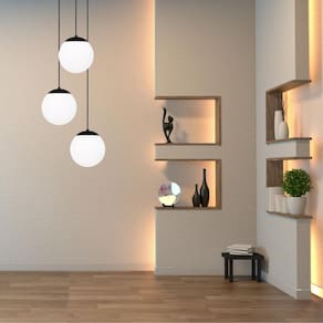 O corpo da luminária é metálico, assim como, a base de teto e a fiação elétrica, também no mesmo tom de cor. Composta por um globo de vidro branco leitoso fosco de 15cm, transmite leveza e organicidade. Acompanha fiação elétrica de 2 metros já instalada no soquete E27. A altura do cabo elétrico pode ser regulado no momento da instalação, tornando-se versátil para diversos espaços, possibilitando ser montado com alturas entre 18cm e 215cm. Ainda, inclui um kit fixação com travessa, parafusos, buchas e arruelas, para maior comodidade e praticidade. Tudo isto, proporciona uma atmosfera orgânica e única à luminária.