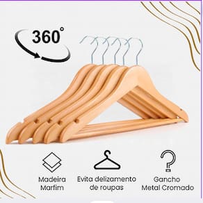 • Suporte firme para diferentes tipos de roupas: Por ser de madeira, oferece uma estrutura robusta que mantém as roupas na posição correta, evitando que escorreguem ou fiquem amassadas.