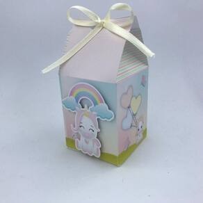 Caixinha formato Milk com fechamento de encaixe, não necessita de cola para a montagem.