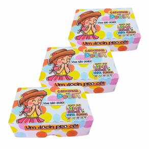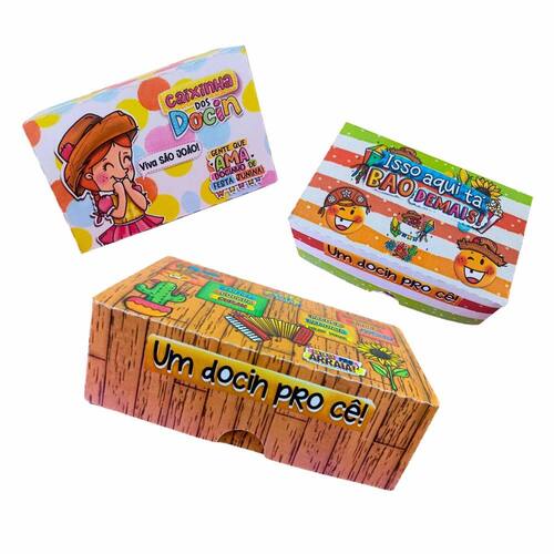 Caixa Festa Junina para Doces e Mimos - Kit 30 Unidades - 3 Modelos Exclusivos Deixe sua Festa Junina ainda mais especial com as Caixas Kibunitinho Perfeitas para embalar doces, lembrancinhas e mimos juninos, nossas caixas versáteis acomodam até 6 unidades e trazem toda a alegria e tradição da festa para sua mesa. Com design exclusivo e 3 modelos diferentes de estampas temáticas juninas, impressão de alta qualidade em papel offset 240g fosco e acabamento impecável, elas dão um toque de charme e autenticidade à sua celebração. O kit inclui: 30 caixas desmontadas, sendo 10 unidades de cada modelo Dimensões: 12cm comprimento x 8cm largura x 4cm altura Características: Impressão de alta qualidade em papel offset 240g fosco 3 modelos de estampas temáticas juninas vibrantes e acabamento gráfico fosco Montagem fácil e rápida por encaixe sem necessidade de cola Versatilidade para embalar diversos tipos de doces e lembrancinhas P: As caixas são enviadas montadas R: Não, as caixas são enviadas desmontadas para garantir que cheguem intactas até você. A montagem é simples e rápida, sem necessidade de cola. P: Posso escolher as estampas das caixas R: O kit já vem com 10 unidades de cada um dos 3 modelos diferentes, para você variar a decoração e surpreender seus convidados P: Posso personalizar as caixas com meu logo Encante seus convidados com embalagens criativas e cheias de tradição Marca: Não Informado Ean: 7900423079672