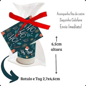 O Kit Contém: 30 Frascos de Hidratante 30ml: Frascos transparentes com tampas também transparentes, cheios de um hidratante com aromas variados. 30 Etiquetas: Cada frasco recebe uma etiqueta temática de Natal, trazendo charme e exclusividade às lembranças. 30 Tags com Furo: Tags decorativas para finalizar a personalização das lembrancinhas. 30 Fitas de Cetim: Fitas coloridas para fechar os saquinhos de celofane, dando um toque festivo ao presente. 30 Saquinhos de Celofane Transparente: Embalagem prática que protege e valoriza os frascos. As garrafinhas já vêm cheias, e os rótulos, tags, saquinhos e fitas são enviados separadamente. Escolha a arte e aroma no momento da compra. Após o pedido, não será possível alterar a opção selecionada.