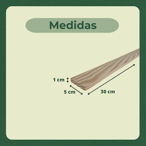 Medidas aproximadas de cada ripa/sarrafo: 1 x 5 X 30 cm (A x L x C)