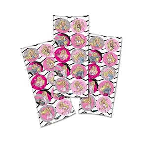 Características do produto: - 3 cartelas de dez unidades, ou seja, são 30 adesivos no total com figuras relacionadas ao tema barbie - material: papel adesivo.
