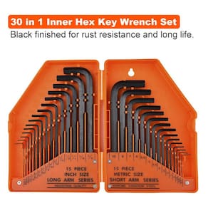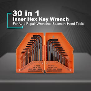 1.30 em 1 Hex Allen Wrench Allen Torx Wrench Sets SAE Metric Driver Tool Set 2.Black com acabamento para resistência à ferrugem e longa vida. 3. Dimensionamento de alta visibilidade em caso de seleção rápida de tamanho. aço de vanádio 4.Chrome para resistência à corrosão a longo prazo. 5. Caixa de armazenamento articulada abre plana, tornando mais fácil para obter suas chaves dentro e fora.