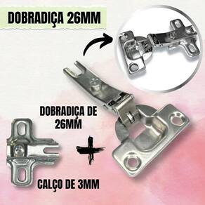 30x Dobradiça Curva Armário Cozinha Guarda Roupa Móveis 26mm Desenvolvida para oferecer um melhor custo-benefício, a dobradiça conta com um sistema de montagem de calço 2 furos, permitindo uma melhor fixação ao móvel. A dobradiça de 26x18mm braço curva é mais indicada para portas semi-embutidas ou parcialmente sobreposta à lateral do móvel, indicada principalmente quando o móvel possui uma sequência com mais de duas portas. Tem como principal aplicação portas de armários, localizados nos mais variados ambientes desde o residencial cozinha, banheiro, quartos, salas até o corporativo. Quantidade: 30 unidades Marca: Jomarca Material: aço Modelo: Alta Acabamento: niquelado Ângulo de abertura: 95 Profundidade do caneco: 10mm Diâmetro do caneco: 26 mm Espaçamento entre furos do caneco: 30mm Espaçamento entre furos da base: 35mm Ciclos de Abertura: 80 mil Utilização em portas de 12 ou 15mm A capacidade depende das dimensões da porta. Para porta com largura de até 50cm: - altura de até 80cm utilizando 2 dobradiças a capacidade é de 4 a 5kg - altura de até 1,6m utilizando 3 dobradiças a capacidade é de 6 a 9kg - altura de até 2m utilizando 4 dobradiças a capacidade é de 10 a 15kg - altura de até 2,5m utilizando 5 dobradiças a capacidade é de 16 a 22kg - Dobradiça Reta A dobradiça reta é mais indicada para portas de móveis que necessitam de um fechamento total, no qual as portas estão fora totalmente da caixaria móvel. Essa dobradiça é recomendada para móveis simples de duas portas ou módulos de roupeiros modulados. - Dobradiça Curva Essa espécie de dobradiça é indicada para móveis armários, balcões, roupeiros... que possuem sequência de portas, pois ela tem um recobrimento parcial do topo, exemplo de um roupeiro de 3 ou mais portas com caixaria única, permitindo o processo de abertura das portas, sem que uma porta atrapalhe a abertura das outras. Para melhor conservação: Não utilize Esponjas de aço ou outros materiais abrasivos. Utilize apenas pano macio e seco. Evitar contato com sódio e ou temperos. O jato de ar também é uma excelente ferramenta para manter suas dobradiças sempre limpas e livres de poeira. Parafuso 4,0x16mm FULL Parafuso 4,0x16mm Envio Comum do vendedor: 3 meses Marca: Não Informado