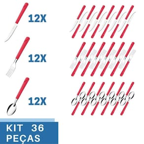 36 Talher Faca Garfo Colher Inox Vermelho Luna Restaurante