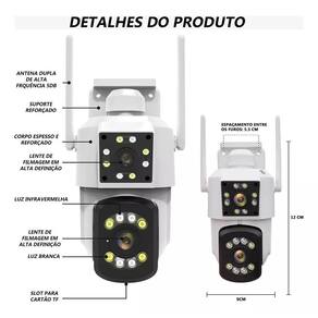 1 Câmera de segurança com lente dupla wi-fi 1 Fonte de alimentação dc 12v 1 Saco de parafuso Marca: Não Informado