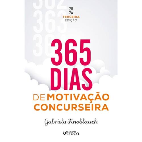 Sobre a obra 365 Dias de Motivação Concurseira - 3ª Ed - 2024 O que proponho nessa obra não é pouco. Juntos, vamos fazer uma verdadeira REVOLUÇÃO EMOCIONAL em você. Um dia de cada vez. Reparou que EU não vou fazer revolução alguma em VOCÊ? Nós faremos isso JUNTOS. Eu não tenho a capacidade de mudar você. Eu só posso clarear algumas coisas para que mude a si mesmo. O poder está nas suas mãos. Reuni neste livro três tipos de fontes inspiradoras para acender a motivação dentro de você: - meditações; - reflexões; - citações. Todo dia primeiro de cada mês você vai encontrar uma poderosa meditação que deve ser repetida durante 30 dias. Cada mês temos um tema importante para o trabalho emocional que pretendemos empreender. Depois, em cada dia do mês, você encontrará uma reflexão de minha autoria, além das citações de pessoas de sucesso que vão te fazer pensar. A reflexão é crucial para você mudar sua visão do processo de preparação para concursos e de todas as emoções que ele envolve. Se você chegou até esse livro, certamente já tem a consciência de que suas emoções são tão importantes para a vitória quanto o estudo em si. Nada te motiva ou desmotiva mais do que sentimentos. Gabriela Knoblauch