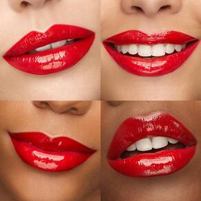 Efeito 3D luminoso e brilhante. Os lábios mostram-se visualmente carnudos, mais cheios e lisos. O sorriso é realçado por uma textura macia e luminosa.