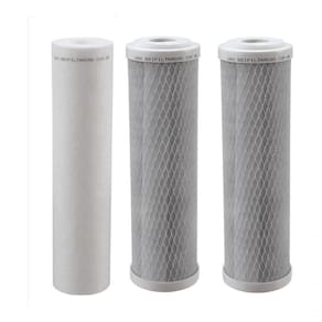 Um refil de polipropileno 5 micra na entrada, dois refis Carbon Block em seguida.