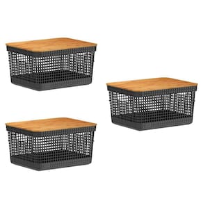 3x caixa organizadora cesto tampa de bambu 8 litros grid ou Cor: preto Maple decor F6180 Kit 3 unidades Caixa cesta organizadora m telada multiuso com tampa de bambu 8l grid ou A caixa cesta organizadora m telada multiuso com tampa de bambu 8l grid ou é produzida com material resistente, atóxico e de alta qualidade. Seu design possui furos, que possibilitam a ventilação e tampa de bambu, que deixa a decoração mais sofisticada e elegante. A linha de cestos grid foi desenvolvida com um mix perfeito entre conforto, design e funcionalidade. Os cestos possuem diversos tamanhos, são empilháveis e versáteis. Então bora deixar o seu ambiente ainda mais bonito, colorido e organizado com aquele toque especial do seu jeitinho ;d Detalhes do produto: - altura: 15,6 cm - largura: 23 cm - profundidade: 29 cm - marca: ou martiplast - capacidade: 8 litros - peso líquido: 668 gramas - conteúdo da embalagem: 3 cesto organizador com tampa - material: plástico pós-consumo proveniente de resíduos coletados do litoral brasileiro e bambu São diversas opções com cores neutras e acabamento fosco, que combinam com qualquer ambiente. Podem ser utilizados em closets, cozinhas, lavanderias ou até mesmo na sala de estar para decorar. Além de possuir tampa em bambu que traz um toque a mais de sofisticação e elegância para qualquer ambiente da sua casa. Limpeza: evitar o uso de materiais abrasivos. Recomenda-se higienizar com sabão neutro e esponja macia. Os cestos grid são perfeitos para aliar organização e decoração na sua casa.