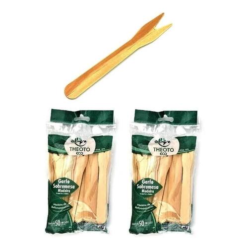 3X Kit 100 Garfo Sobremesa Madeira Ecológico Garfinho Festa