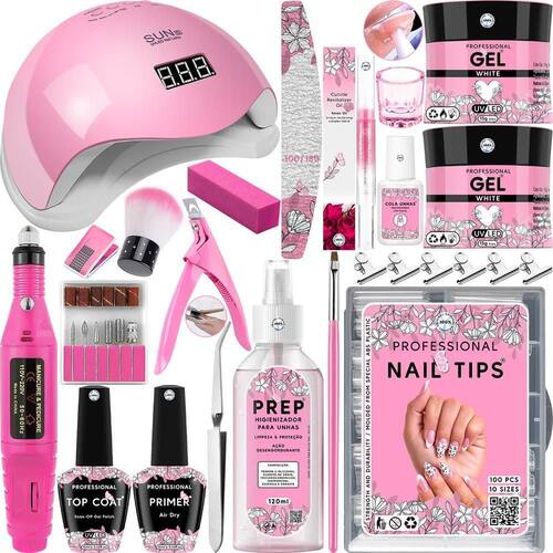 3X Kit Unhas De Gel Cabine Lixadeira Alongamento Extensão