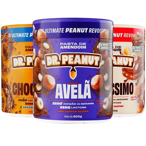 3x Pasta de Amendoim 600g com Whey Protein Isolado Dr Peanut