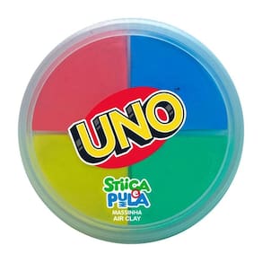 Massinha que estica, semelhante a uma slime, pula e pode ser modelada! Com as cores icônicas do jogo UNO. Há várias brincadeiras que as crianças irão adorar.