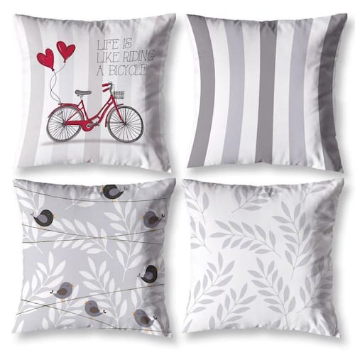 4 Almofadas Cheias Sala 40Cm X 40Cm Estampadas Bike Branco