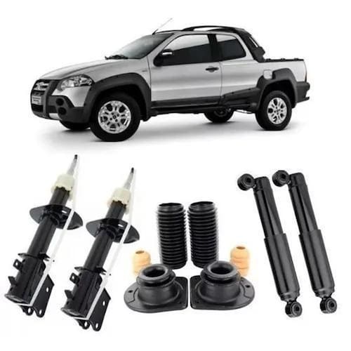 Millenium amortecedores. Os amortecedores são de ótima qualidade com uma ótima durabilidade. de 6 messes... Descrição do produto: 2- amortecedores dianteiros 2- amortecedores traseiros Kit dianteiro contém: 2 coxim + 2 batente + 2 guarda pó Aplicação: - fiat strada adventure / loker Ano: após 2011 Atenção: A instalação deve ser feita por um profissional qualificado na área. A millenium, não se responsabiliza por danos referentes a instalação. Caso tenha alguma duvida sobre o produto, chame pelo chat do vendedor