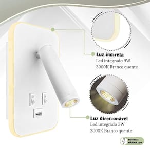 Esta arandela apresenta um design elegante e versátil, ideal para quartos, salas e escritórios. Seu foco direcionável permite ajustar a iluminação conforme a necessidade, sendo perfeita para leitura ou destaque de objetos decorativos. Além disso, conta com LED integrado nas bordas, proporcionando uma iluminação suave e indireta, criando um efeito aconchegante no ambiente.