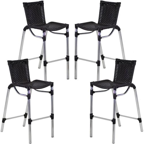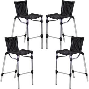 4 Banqueta Alumínio Fortaleza Alta Para Balcão, Cozinha, Área - Marrom Chocolate