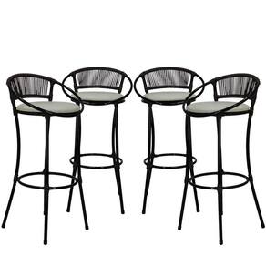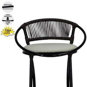 4 Banquetas Havaí Em Fio De Fibra Artesanal Para Bar, Bancada, Lanchonete - Branco Gelo Tabaco